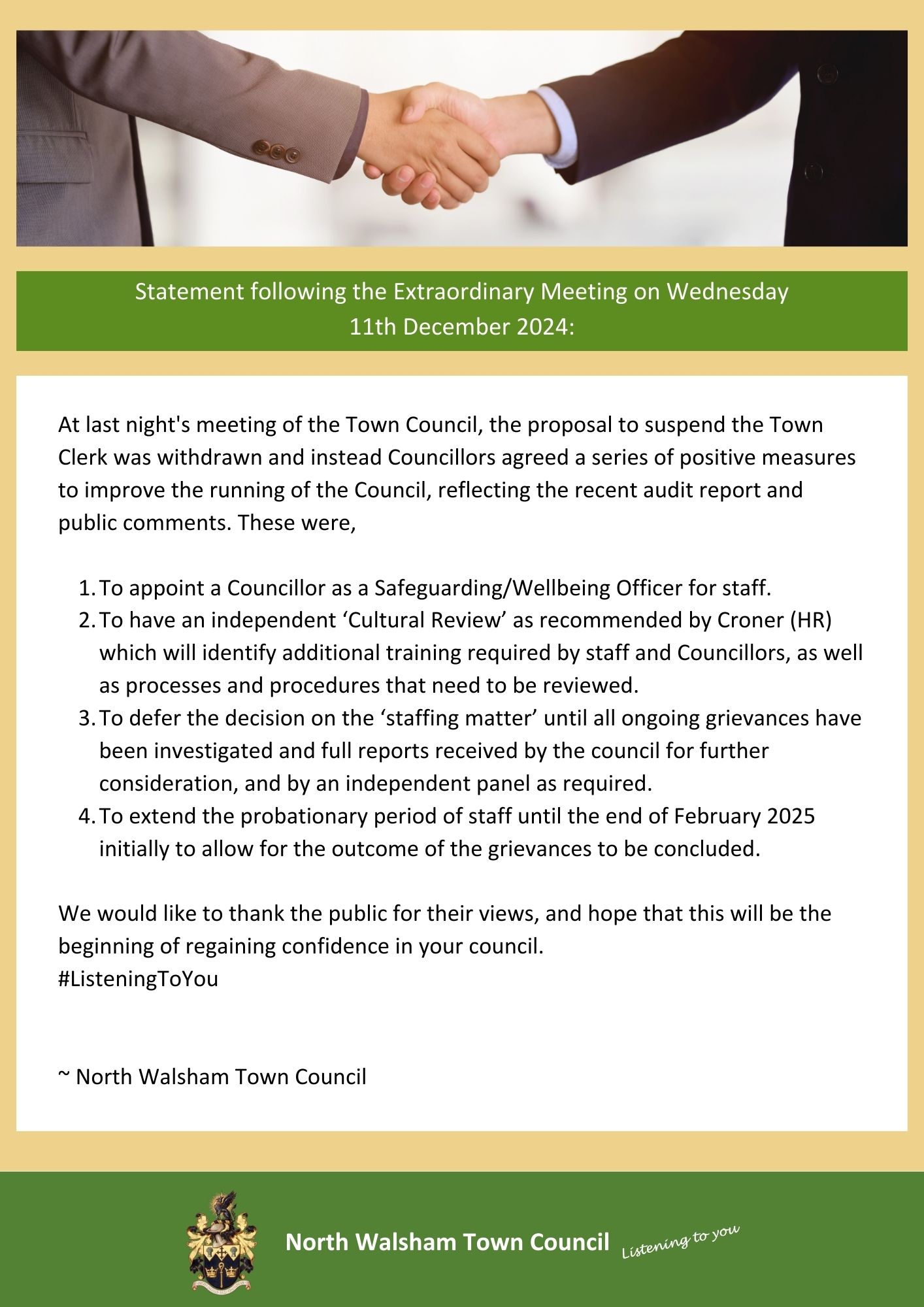 Please see the statement below from NWTC after the Extraordinary Meeting 11th December 2024: